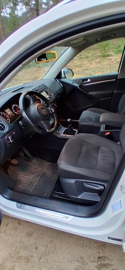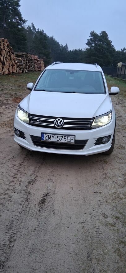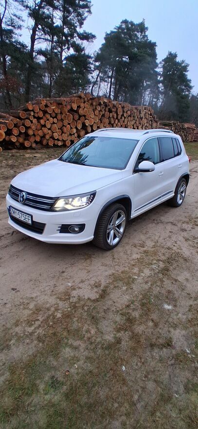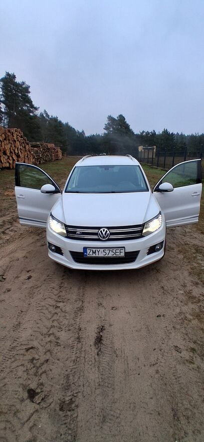 Sprzedam śliczne autko Volkswagen Tiguan 1.4 TSI o mocy 160KM, rok prod. 2012 z przebiegiem 160 tys. kilometrów. W pięknym kolorze Candy White, dodatkowo ubrany w pakiet R-line co dodaje niewątpliwie wdzięku.Autko w stanie wręcz idealnym co widać na zdjęciach. Sprowadzone z Niemiec półtora roku temu.
